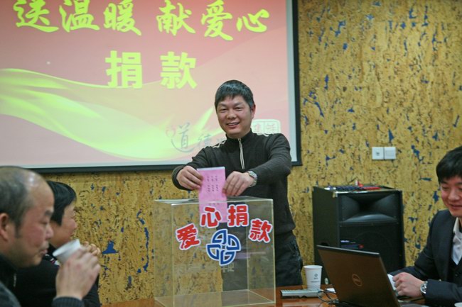 予人以愛,人予我愛。在發善心環節,隨著一段溫暖的音樂響起,主持人宣讀了“送溫暖獻愛心”捐款倡議書,倡導大家奉獻自己的一片愛心。活動得到了大家的熱烈響應,紛紛上臺捐款,大家表示會繼續支持公司志愿服務事業的發展,將愛心傳遞的更加遙遠,讓社會變得更加友愛、和諧。