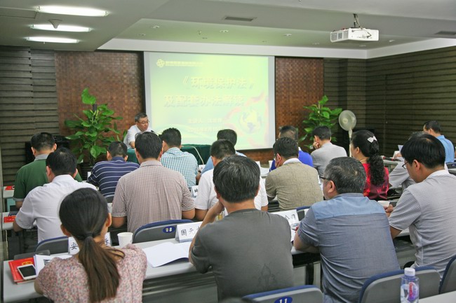 培訓(xùn)中,沈世偉從當(dāng)前的環(huán)境熱點(diǎn)事件入題,介紹了新環(huán)保法出臺(tái)的背景,詳細(xì)解讀了新環(huán)保法的四大亮點(diǎn)和關(guān)鍵條款,重點(diǎn)闡釋了新《環(huán)保法》與1989年頒布實(shí)施的《環(huán)保法》在創(chuàng)新環(huán)境理念、創(chuàng)新多元共治、強(qiáng)化政府責(zé)任、明確企業(yè)義務(wù)、增加環(huán)保授權(quán)、加強(qiáng)信息公開、嚴(yán)懲違法企業(yè)等方面的變化。他結(jié)合案例全面透徹地詮釋了新環(huán)境保護(hù)法法規(guī)條款,讓大家對新《環(huán)保法》及配套辦法有了全面的認(rèn)識和了解,同時(shí)也增強(qiáng)了大家的環(huán)保觀念和意識。