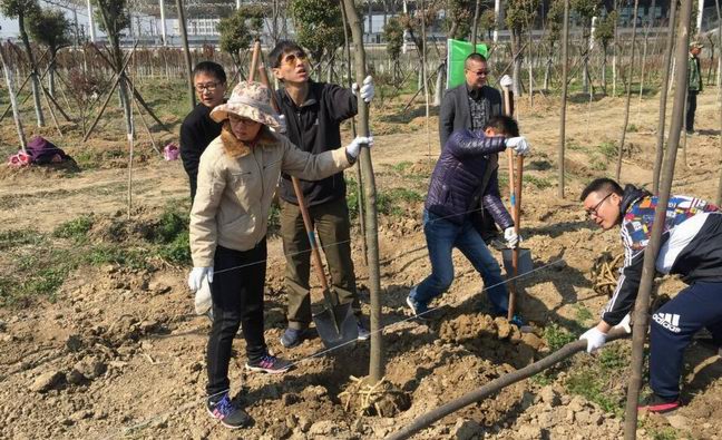2017年3月27日上午,城市運(yùn)營(yíng)黨支13名黨員與蚌埠建設(shè)發(fā)展公司、工程代理公司、房管經(jīng)營(yíng)公司的8名員工一同來到蚌埠建設(shè)發(fā)展公司的苗木基地,開展義務(wù)植樹活動(dòng)。
