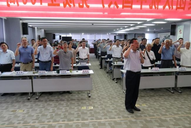 在鮮紅的黨旗下,黨員同志們莊嚴地舉起右手,重溫入黨誓詞,這是初心使命的再宣示,是接續奮斗的再出發。在激昂的樂曲中,集團黨委班子成員為5名老黨員代表發放“光榮在黨50年”紀念章、佩戴紅花。沉甸甸的紀念章不僅僅是對老黨員的最高禮贊,更是激發集團廣大黨員干部續寫時代新篇章的強大動力。隨后,陳建功為全體與會人員作了黨史專題黨課。