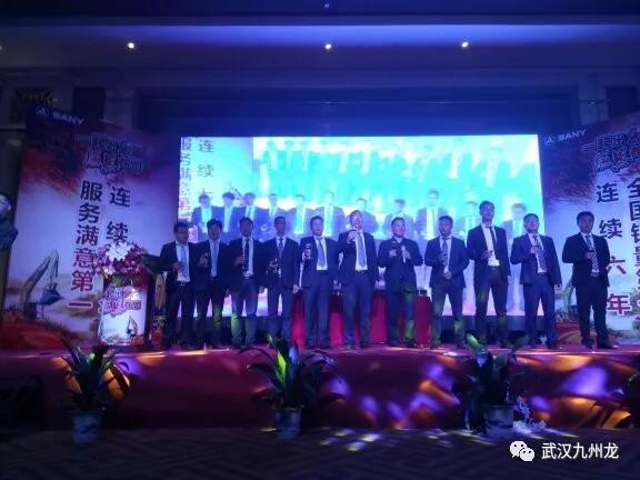 2017年武漢九州龍銷量破千,離不開廣大客戶的支持。會議接近尾聲,武漢九州龍方總、謝總以及所有分公司經理上臺答謝客戶,全場舉杯共飲。