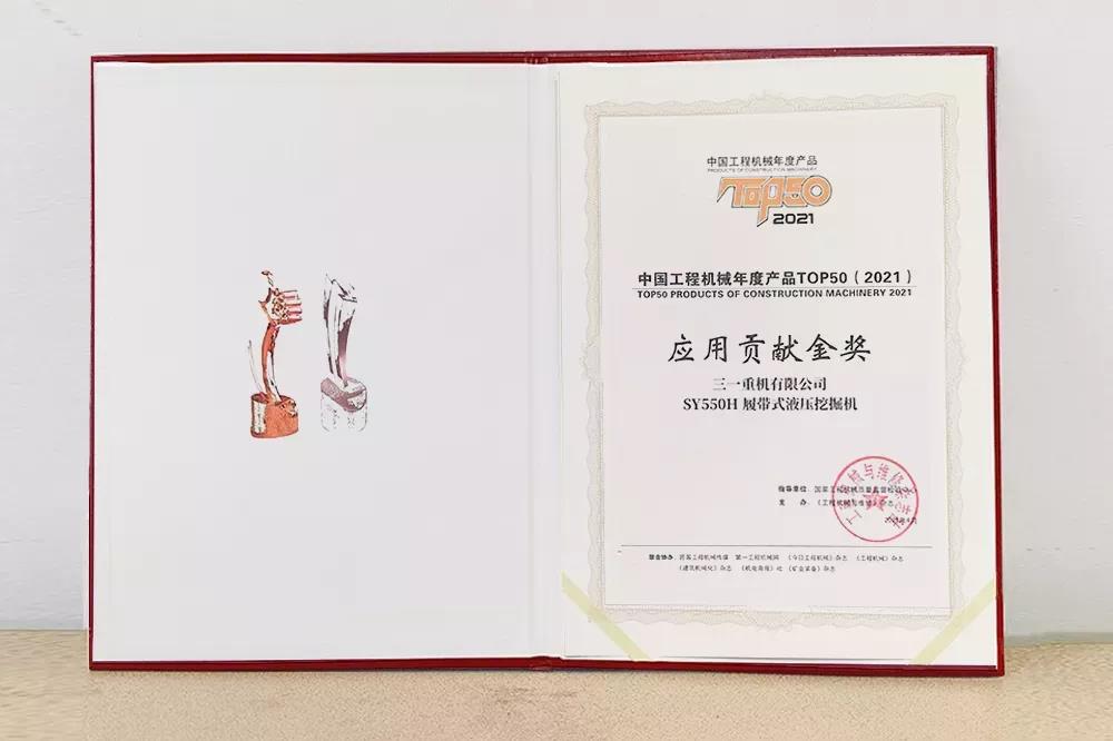 近日,由國家工程機械質量監督檢驗中心指導、工程機械與維修雜志主辦的“2021中國工程機械年度產品TOP50云頒獎典禮”成功舉行,三一SY550H型履帶式液壓挖掘機、SR405R-HK旋挖鉆機榮耀上榜,分獲“應用貢獻金獎”、“top50獲獎產品獎”。