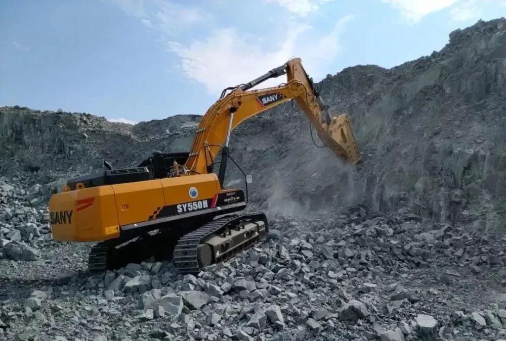 SY550H型履帶式液壓挖掘機,標配200破碎錘,專用控制程序為破碎模式匹配最佳參數,深度滿足礦山破碎作業,五大結構件壽命均超2萬小時,是大型露天礦山超高效破碎作業的又一新利器。